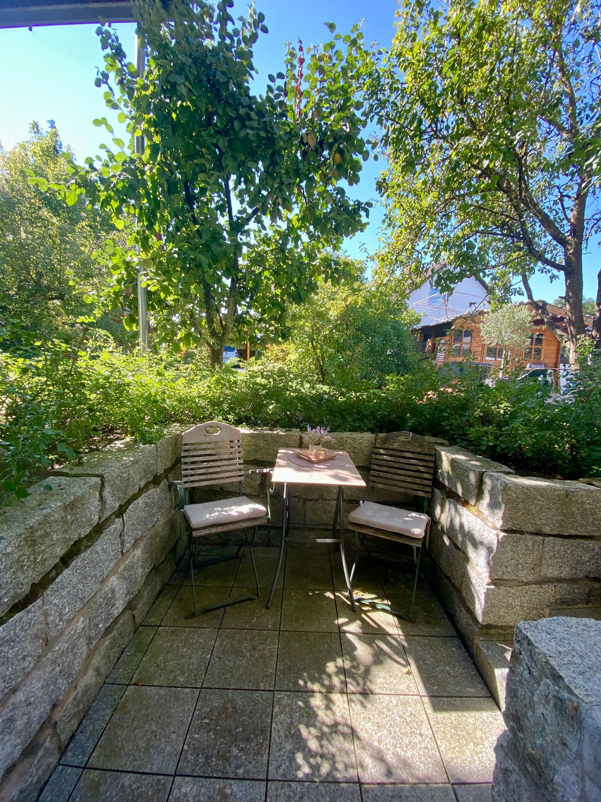 kleine, gemütliche Terrasse im Garten
